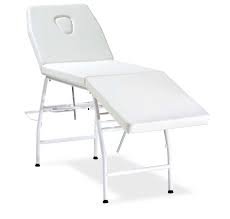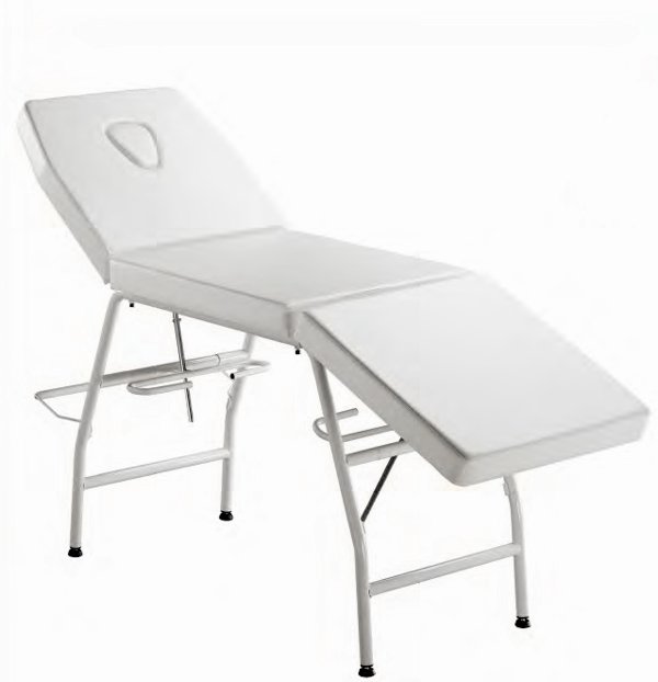 Lettino per massaggi con struttura in acciaio, tubolare diametro 30mm colore bianco. Rivestimento in similpelle lavabile bianco. Testata regolabile parte dei piedi regolabile predisposto per portarotolo (optional a richiesta)