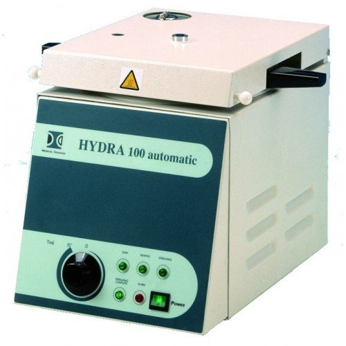 L'autoclave HYDRA 100 è composta da una resistenza posta sotto la camera di sterilizzazione la quale permette il raggiungimento a 125°C dell'acqua distillata. La pressione che si viene a creare all'interno della camera di sterilizzazione in combinazione con la temperatura permettono la completa asepsi sugli strumenti. La sterilizzatrice è dotata di vari sensori che controllano il raggiungimento della temperatura, la quale è preimpostata e non modificabile per prevenire manomissioni.