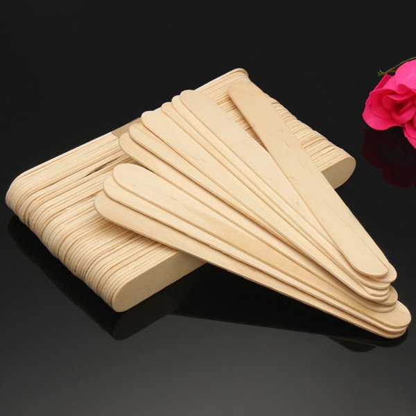 Spatole in legno monouso con punte tonde, utili per stendere in modo facile, veloce ed uniforme la cera depilatoria a caldo.