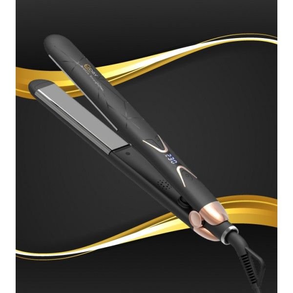 La splendida Bronze Straightner è eccezionale. La piastra raggiunge la temperatura di 230° con resistenza MCH che arriva alla massima temperatura in 40 secondi. Dispone di piastre in titanio basculanti, display con visualizzazione temperatura, spia sonora per avviso cambio temperatura, pulsante di blocco e cavo girevole 360°. La piastra professionale consente di ottenere un liscio e un mosso perfetti, la distintiva configurazione arrotondata del design delle piastre ne facilita lo styling.