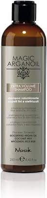 Shampoo Volumizzante per capelli fini, elettrizzati e stressati. La sua formulazione leggera e delicata è concepita per apportare volume e una profonda idratazione ai capelli fini, privi di corpo, elettrizzati con tendenza all’effetto crespo. Lo shampoo extra volume magic arganoil di Nook svolge un’efficace azione antistatica conferendo sostegno e corposità ai capelli fini, privi di forma e indeboliti. Rinforza e rivitalizza le strutture secche e stressate apportando un corretto grado di idratazione alla fibra capillare, migliorandone la resistenza e l’elasticità. Apporta luminosità, leggerezza e morbidezza, senza appesantire il fusto e la radice del capello.
